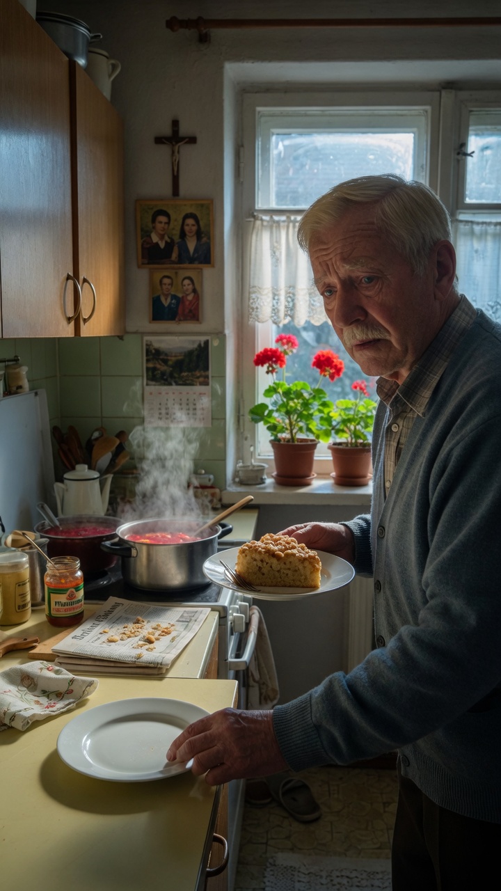 Drei Monate sind seitdem vergangen. Ich lebe noch immer allein, aber inzwischen riecht es in meiner Wohnung nach Borschtsch. Auf dem Balkon blüht Geranie, die ich selbst eingepflanzt habe. Sonntags backe ich Apfelkuchen nach Olgas Rezept. Manchmal denke ich: „Vielleicht sollte ich ihr ein Stück bringen.“ Zum ersten Mal seit vierzig Jahren habe ich verstanden, was es heißt, nicht einfach nur ein Ehemann zu sein, sondern ein Mensch neben einem anderen Menschen.
