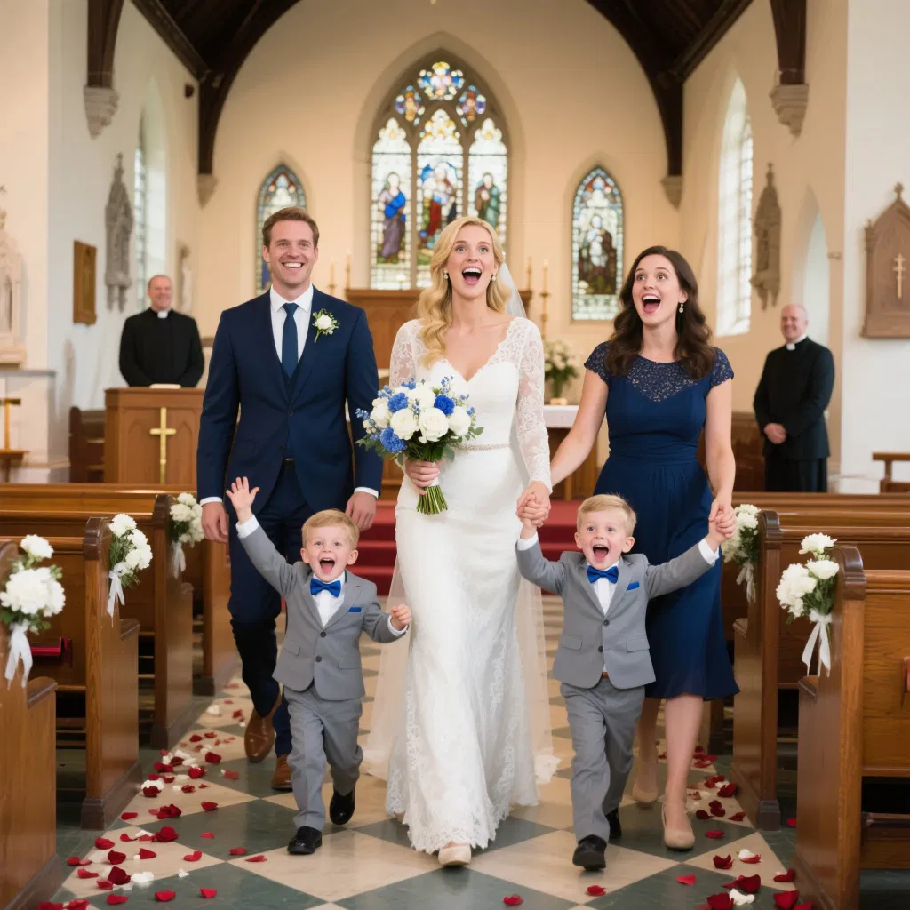 Hinter mir folgten vier Kinder – Vierlinge, die sich so ähnlich sahen, dass sie wie perfekte Porzellankopien des Mannes am Altar wirkten.