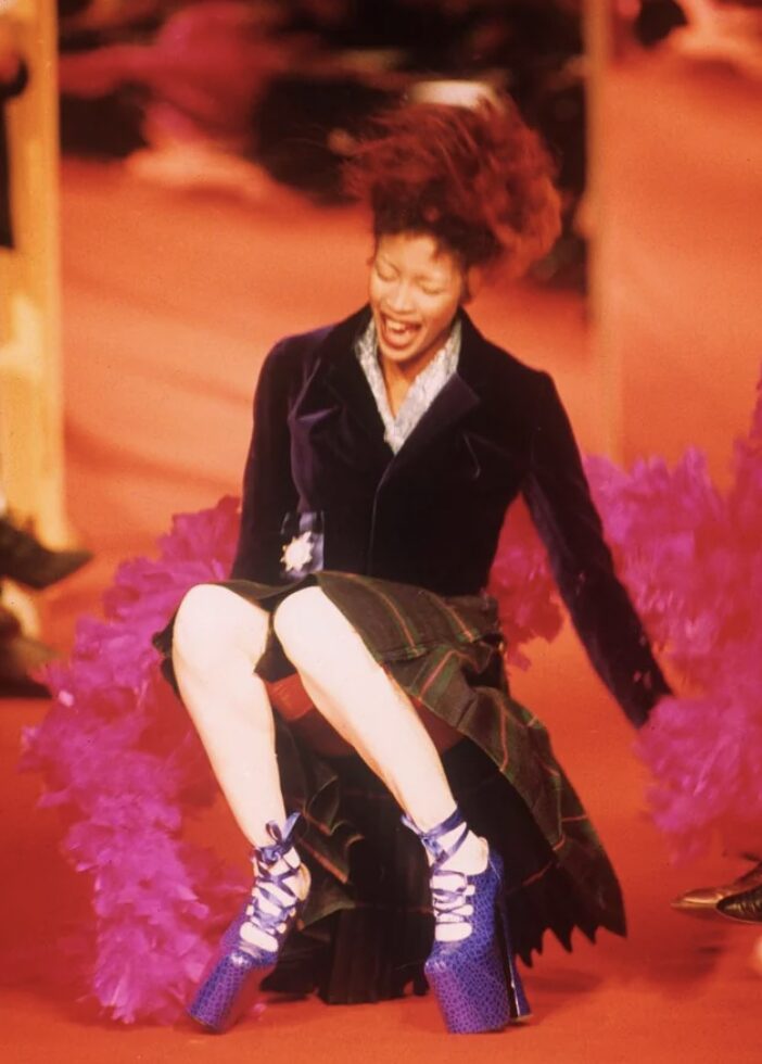 Die bekannteste Episode ist die Modenschau von Vivienne Westwood im Jahr 1993, als Naomi mit ihren 23-Zentimeter-Plateauschuhen spektakulär auf dem Laufsteg stürzte. Anstatt sich zu ärgern, lachte sie laut auf und verwandelte diesen peinlichen Moment in eines der denkwürdigsten Bilder der Modegeschichte.
