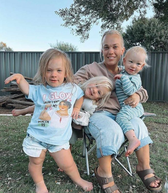 „Nur der Jüngste hat keine Besonderheiten“: Die 127 cm große Mutter zeigte stolz ihre drei Kinder.