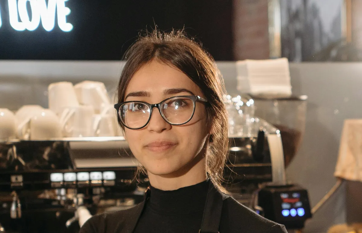 Da tauchte die Kellnerin neben mir auf. Sie sah jung aus, vielleicht 22, mit nervösen Augen, die meinen Blick nicht ganz erwidern wollten.
