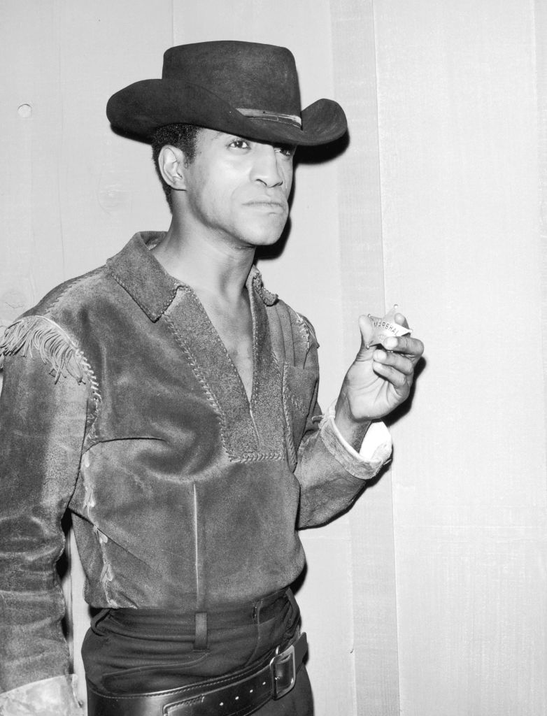 Sammy Davis Jr. mit Cowboyhut, Wildledershirt und Marshal-Abzeichen. Davis trug dieses Kostüm für einen Auftritt in der Folge „Two Ounces of Tin“ der Fernsehserie „The Rifleman“. (Foto: Hulton Archive/Getty Images)